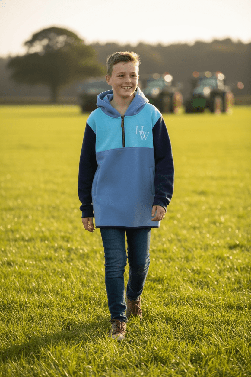 It features strong ribbed cuffs to keep the cold out and zipped pockets to keep their treasured finds safe. Designed in bold, appealing colours and finished with Hoofwear branding, so your young ones can match the big shearers in style and spirit.