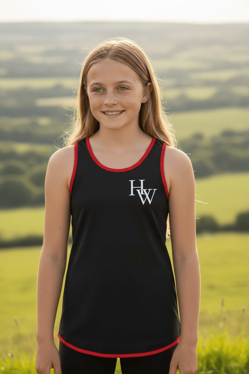 Kids’ Shearing Singlet – Black and Red