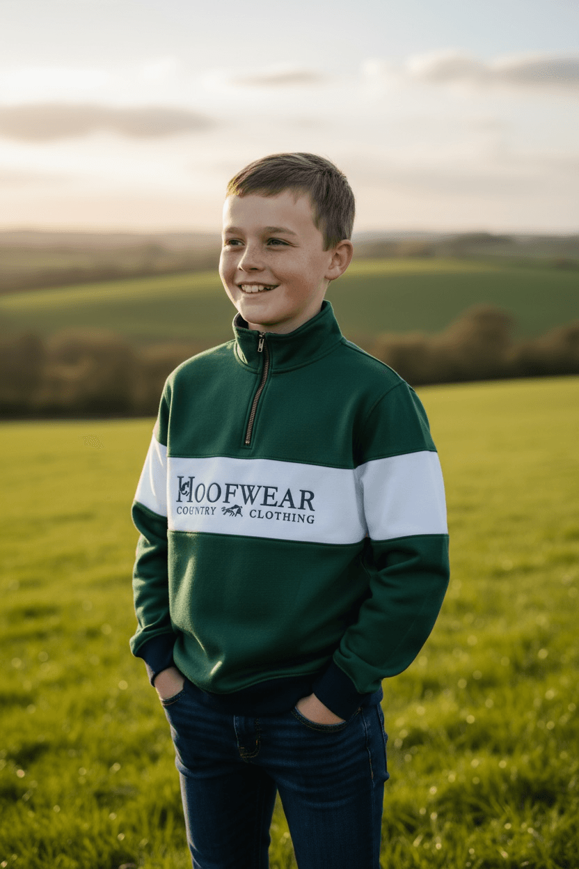 Tough enough for farm life, soft enough for everyday play — the Hoofwear kids’ 1/4 zip sweatshirt is built for youngsters who live the country lifestyle right alongside the grown-ups. Whether they’re helping in the yard, riding ponies, or heading out for a countryside walk, this cosy layer keeps them warm, comfy, and ready for anything.