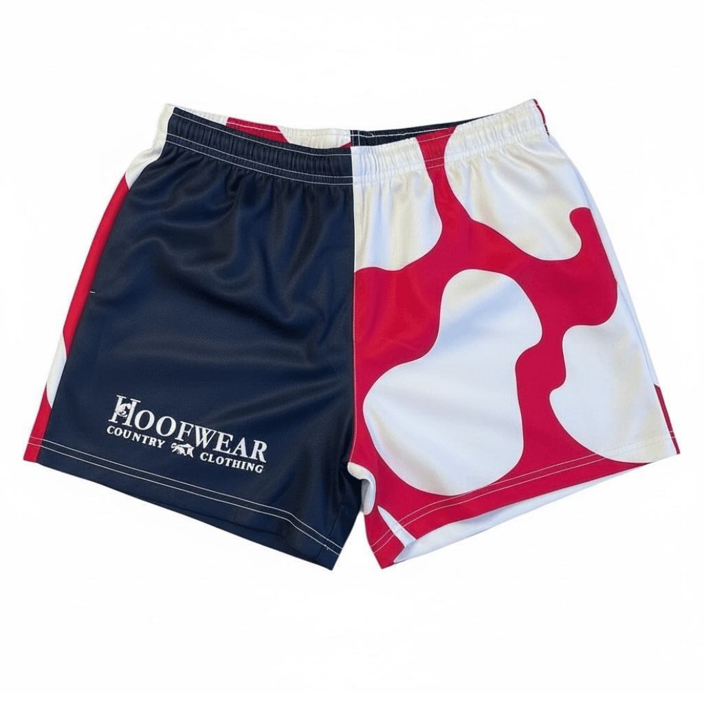 Unisex Rugby Shorts – Pink and Navy with Cow Print